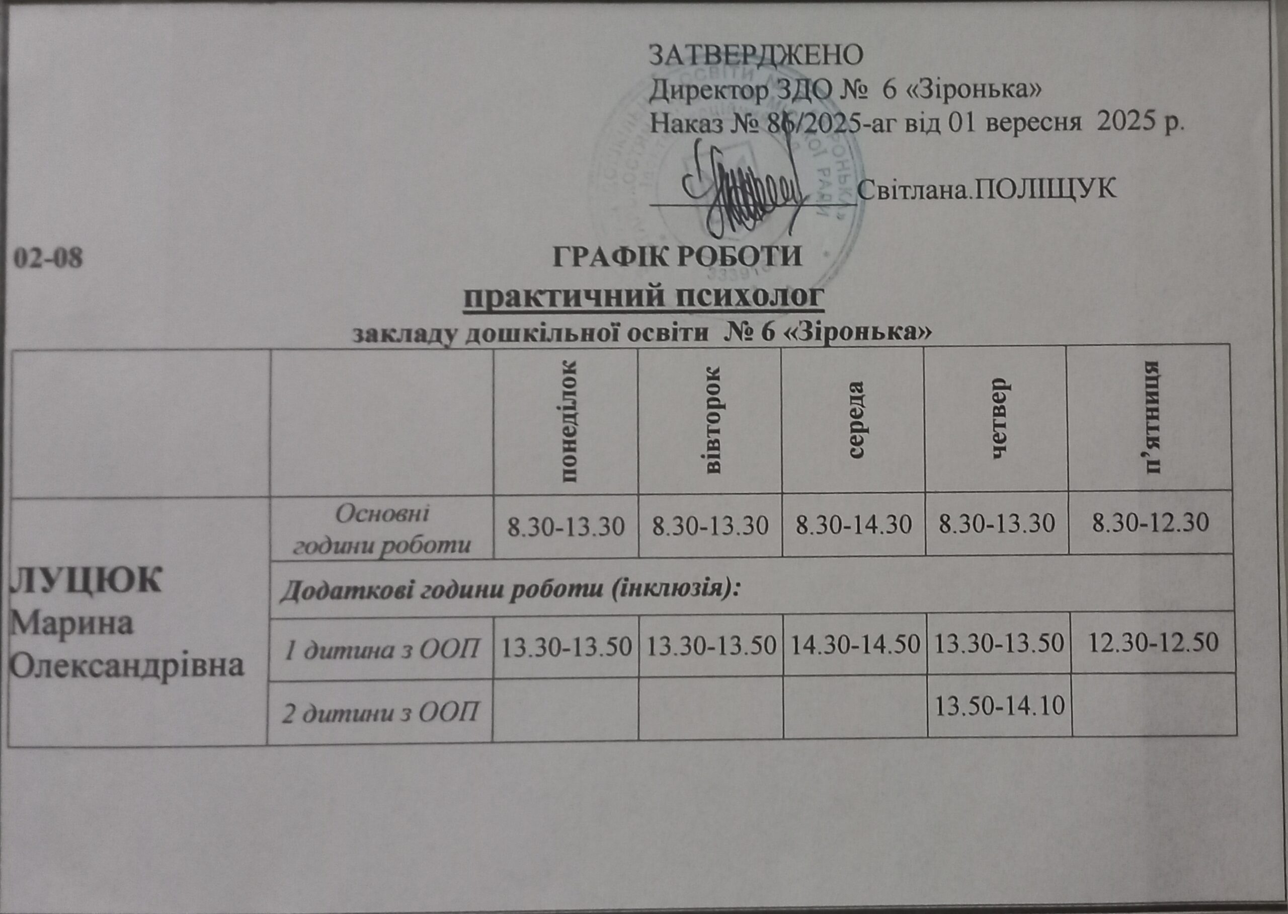 Практичний психолог ЗДО — Луцюк Марина Олександрівна