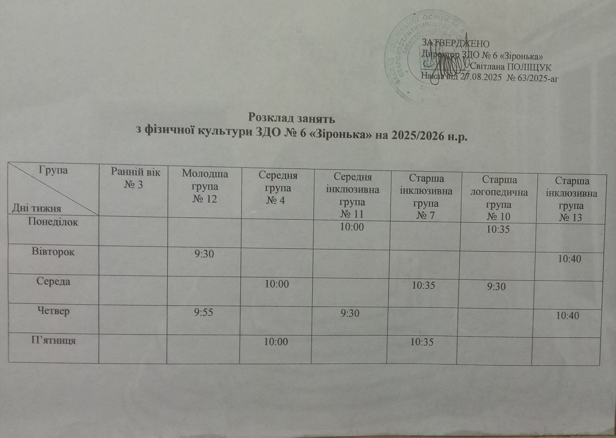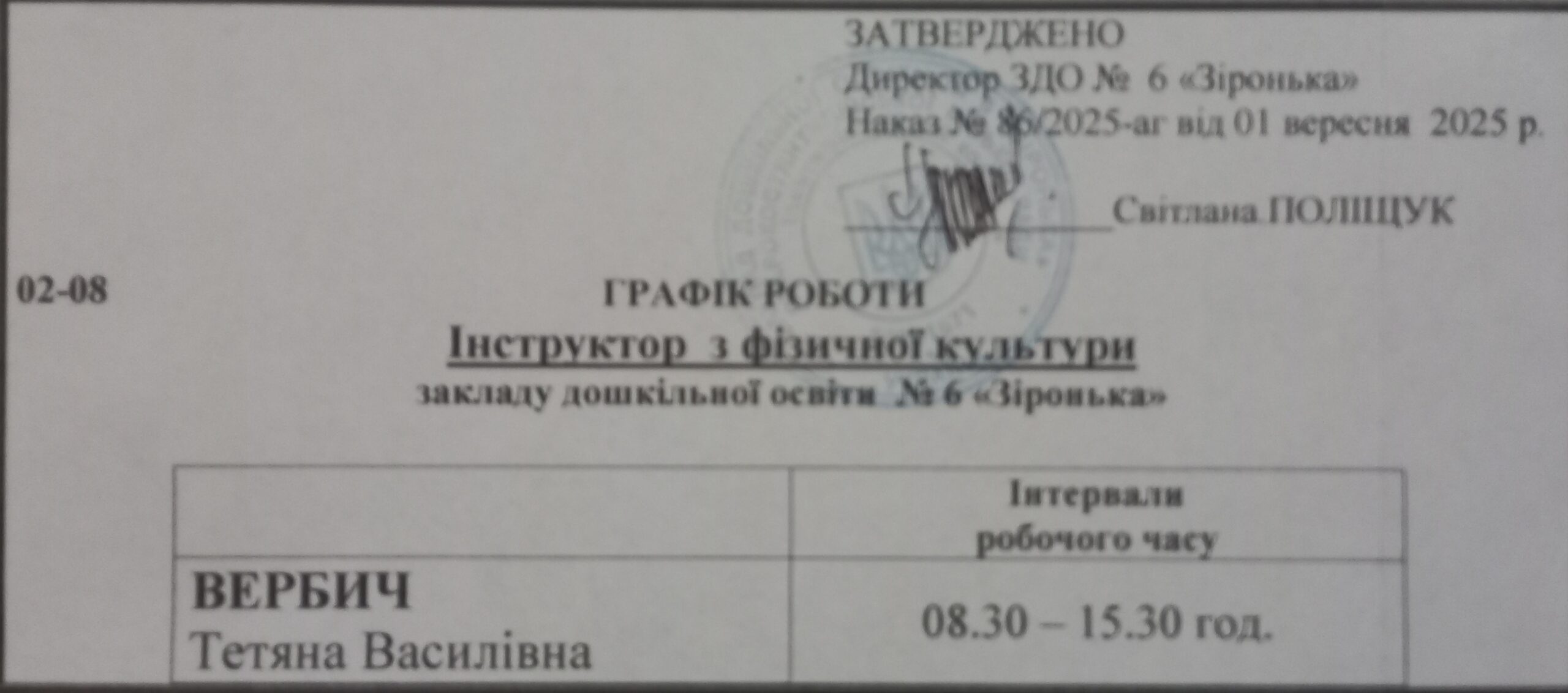 З дітьми працює інструктор з фізичної культури ВЕРБИЧ Тетяна Василівна